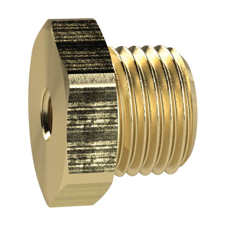 - Reduziernippel, kurze Ausführung, M14x1,5 a., M10x1,0 i., SW 17, Messing, Arbeitsdruck max. 25 bar, Betriebstemperatur max. 150 °C