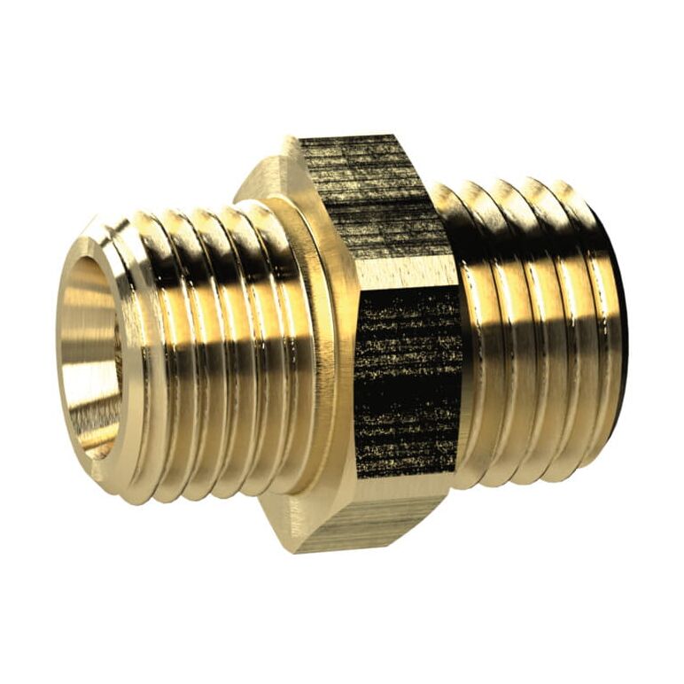 - Doppelgewindenippel, G 1/4 a., M14x1,5 a., SW 17, Messing, Arbeitsdruck max. 25 bar, Betriebstemperatur max. 150 °C