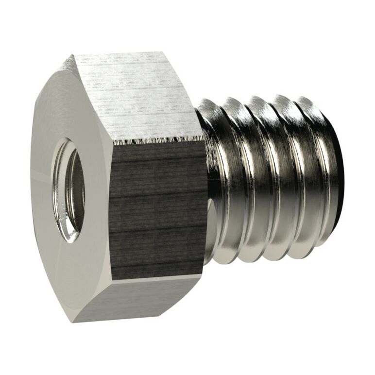 - Reduziernippel, kurze Ausführung, G 1/8 a., M5 i., SW 14, Messing vern., Arbeitsdruck max. 25 bar, Betriebstemperatur max. 150 °C