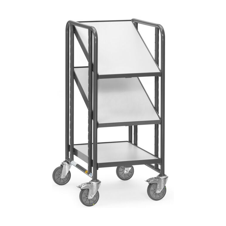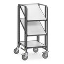 - 3 Etagenrahmen mit 3 elektrisch leitfähigen Holzwerkstoffplatten, Rand 7 mm hoch, für je 1 bzw 2 Eurokästen 600 x 400 mm, variabel einschraubbar, Raster 50 mm, Neigung bei schrägem Einbau 15° oder 30°