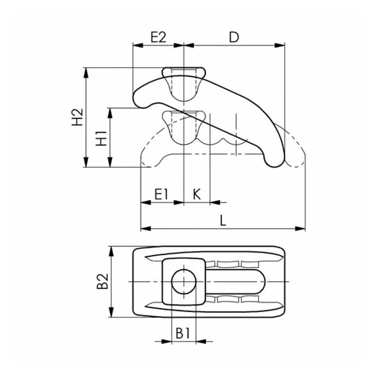kurz · mit U-Stück · stufenlos verstellbar · vergütet · verzinkt und blau passiviert Weitere technische Eigenschaften: · Länge: 140 mm · B1: 22mm · B2: 66mm · E2: 46mm · E1: 32mm · Gewicht: 1253g · H1: 0-65mm · H2: 50-100mm · L: 140mm · K: 20mm