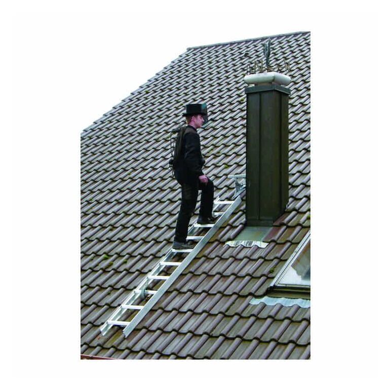 - Der Dachneigung angepasste Dreieckssprossen mit kräftiger Riffelung für einen sicheren Stand