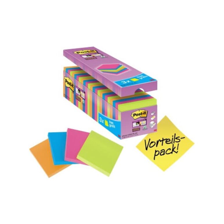 21 + 3 GRATIS: Post-it® Super Sticky Notes Haftnotizen farbsortiert 21 Blöcke + GRATIS 3 Blöcke