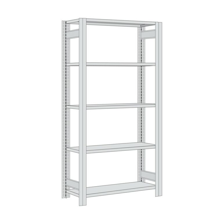 Archivregal, verzinkt, Fachl. 80 kg, Grundregal, BxTxH 875x300x2000 mm, 5 Böden / 5 OH, ohne Abschlussboden