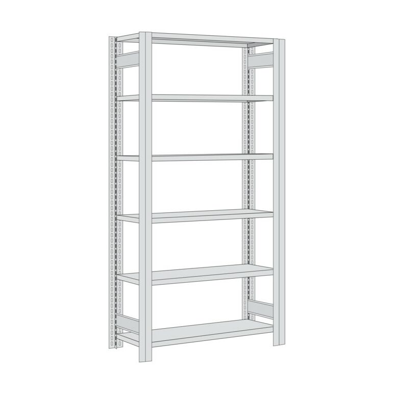 Archivregal, verzinkt, Fachl. 80 kg, Grundregal, BxTxH 1285x300x2000 mm, 6 Böden / 5 OH, mit Abschlussboden