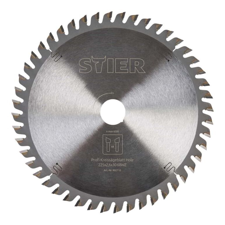 STIER Kreissägeblatt, Holz, 225 x 2,6 x 30 mm, 68 Zähne, Wechselzahn