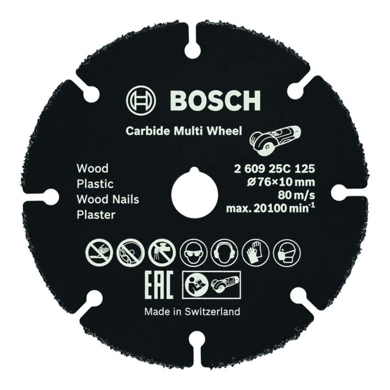 Bosch - Professional 260925C125 Disc De Cutting Carbide Multi Wheel For Wood With Nails, Plastic, Drywall, Copper Pipes, ø 76 mm, Diameter Del Hole