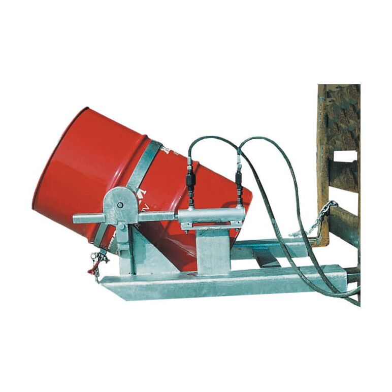 Aufnehmen, Transportieren und dosiertes Entleeren von 200-l-Stahl-Spundfässern und Stahl-Deckelfässern