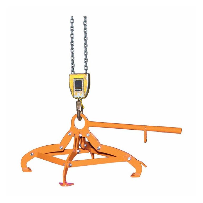 Fassgreifer mit 4-Punkt-Spannsystem, für 200-l-Stahl-Spundfässern, Stahl-Deckelfässern, 220-l-Kunststoff-L-Ringfässern und Kunststoff-Doppel-L-Ringfässern, lackiert