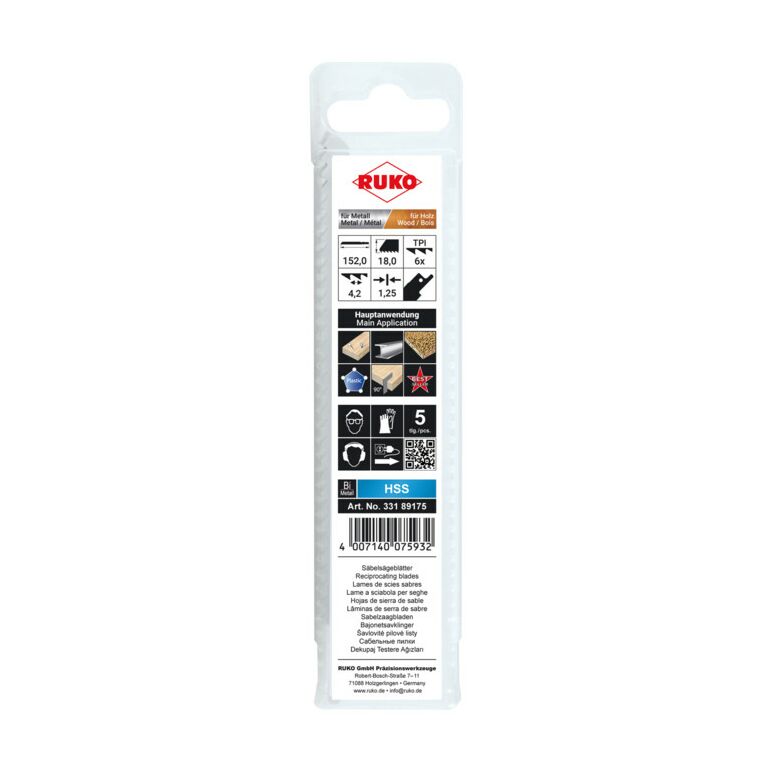 EigenschaftenZahnung geschränkt und gefrästHolz mit Nägeln, Metall, Spanplatten von 10,0 - 100,0 mm Materialstärke, Kunststoffprofile von Ø 5,0 - 100,0 mm, massive Kunststoffe / GFK von 8,0 - 50,0 mm, Fensterrahmen aus Holz und MetallSpeziell für Tauchschnitte geeignet.