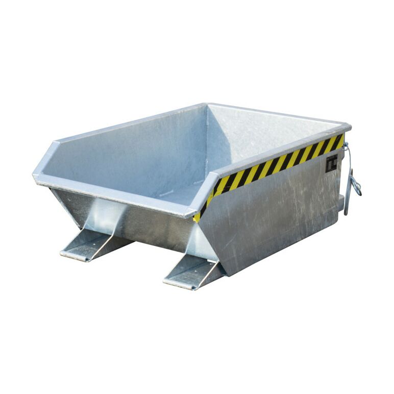 Extrem niedrige Bauhöhe – der ideale Kippbehälter unter MaschinenEigenschaften:Günstiger KippwinkelKippen in jeder Höhe per Seilzug vom StaplersitzWannenblech mit umlaufendem RandprofilStabiler Grundrahmen mit EinfahrtaschenSicherung gegen unbeabsichtigtes Abrutschen und AbkippenRollen nachrüstbar