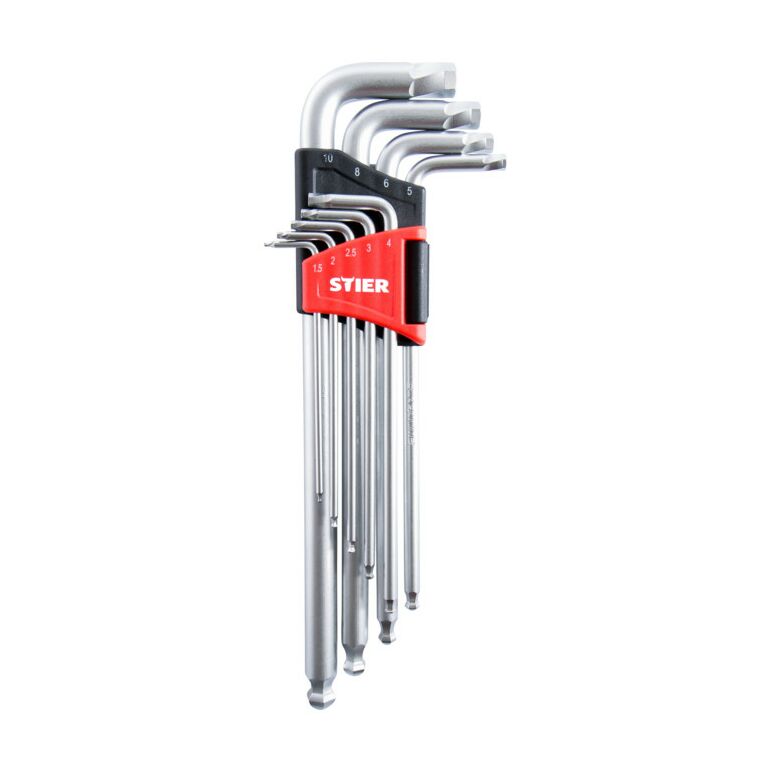 Die Problemlöser von STIER - Der STIER HexSpezial für rundgedrehte Schrauben.Eigenschaften:9-teiliger Winkelschraubendreher-Satz für Innensechskant-Schrauben mit allen gängigen SchlüsselweitenSchlüsselweiten (mm): 1,5 | 2 | 2,5 | 3 | 4 | 5 | 6 | 8 |10HexSpezial: Leicht gedrehte Anlageflächen ermöglichen einen optimalen Halt des Winkelschraubendrehers im Schraubenkopf und sorgen dafür, dass auch rundgedrehte Schrauben noch gelöst oder festgezogen werden könnenKugelkopf am langen Schenkel ermöglicht Arbeiten im schwierigen Schraubfall unter Winkeln bis zu 25°Hochwertige Verarbeitung für den Einsatz in Handwerk und IndustrieHochwertige Verarbeitung aus SNCM-V Stahl garantiert eine lange LebensdauerAufhängbare Kunststoff-Halterung gibt den Winkelschraubendrehern einen sicheren Halt und bringt Ordnung in Werkstatt und KofferAnwendung: Allgemein im Handwerk, Metallbau, Holzbau, Industrie einsetzbarLieferumfang:9x Winkelschraubendreher für Innensechskant-Schrauben Schlüsselweiten (mm): 1,5 | 2 | 2,5 | 3 | 4 | 5 | 6 | 8 |10STIER-Produkte werden von Profis aus Handwerk und Industrie entwickelt und verbinden in höchstem Maße Leistungsstärke und Ergonomie. Kraftvoll. Widerstandsfähig. Langlebig.Tausende Kunden vertrauen dem besten Preis-Leistungs-Verhältnis. Erlebe auch du die STIER Produktpalette auf unserer Markenseite.