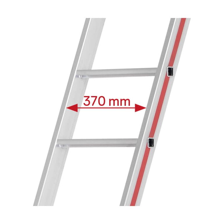 • Verstärkte Stufen mit 80 mm Stufentiefe. Vorderkante mit Holm bündig
