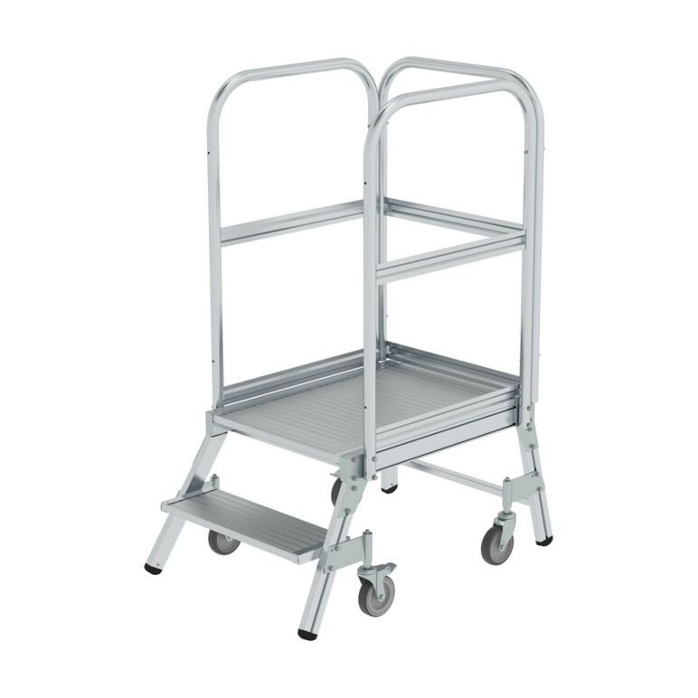 - 3-seitiges Geländer sowie Knie- und Fußleiste für sicheres Stehen (Höhe: 1.000 mm)
