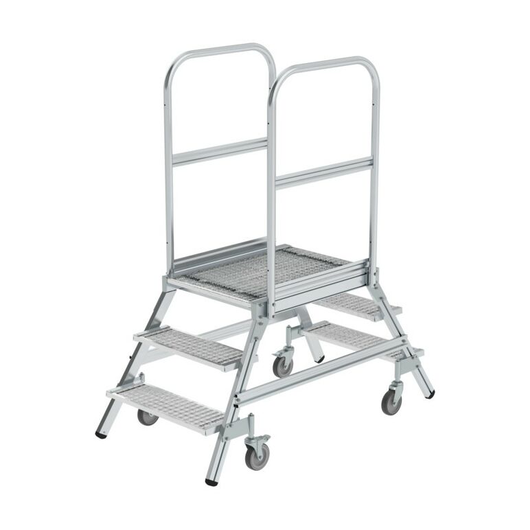 MUNK Günzburger Steigtechnik Alumnium-Podestleiter beidseitig begehbar Stahl-Gitterrost 3 Stufen