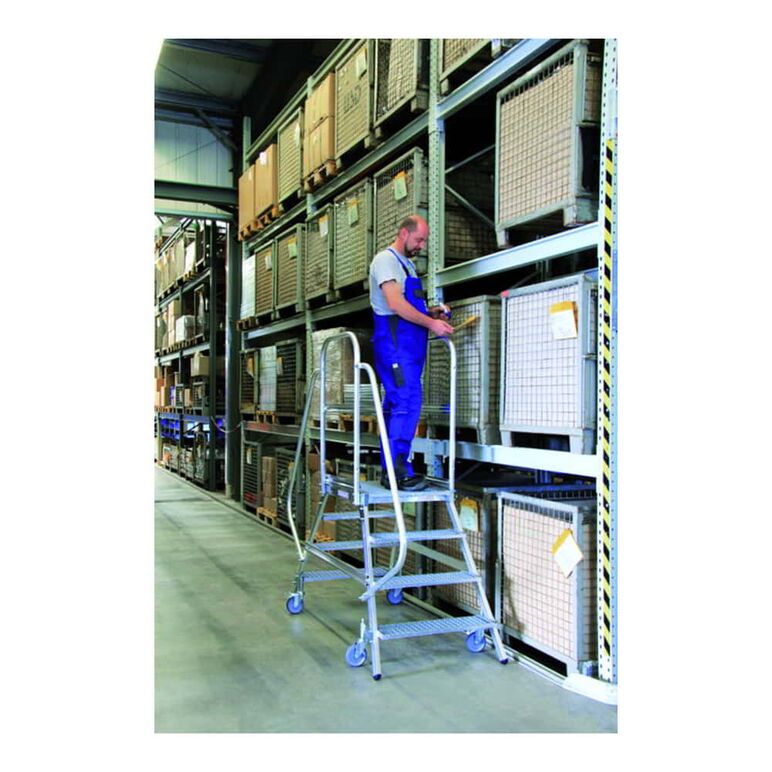 • 3-seitiges Geländer sowie Knie- und Fußleiste für sicheres Stehen (Höhe: 1.000 mm)
