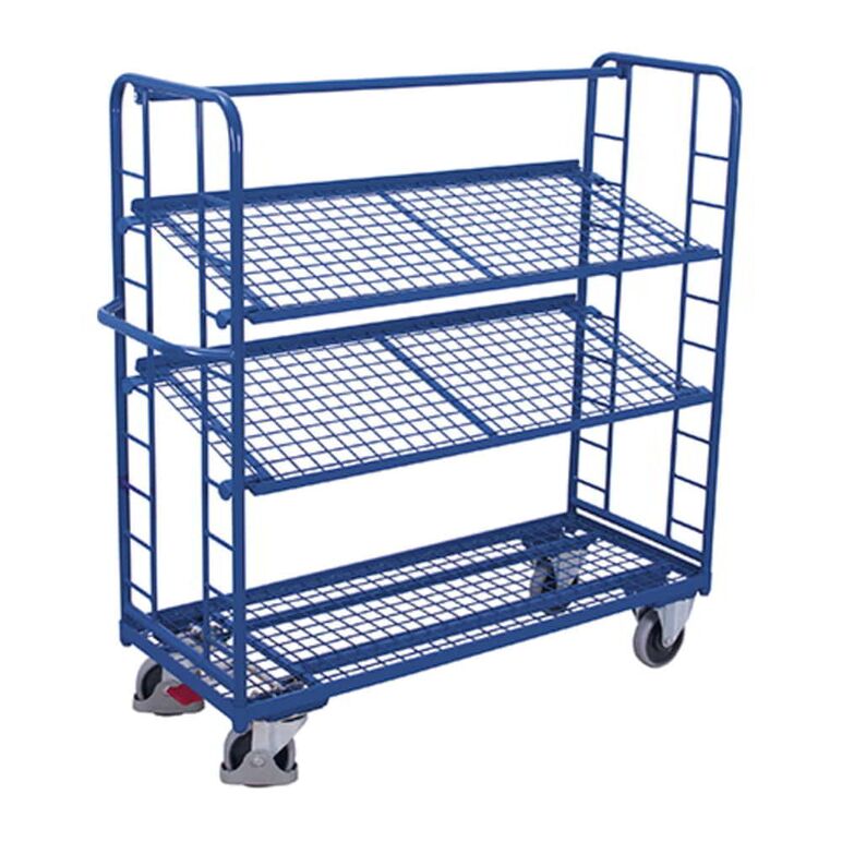 Etagenwagen mit 3 Drahtgitterböden RAL5010 Enzianblau Rollwagen Kastenwagen