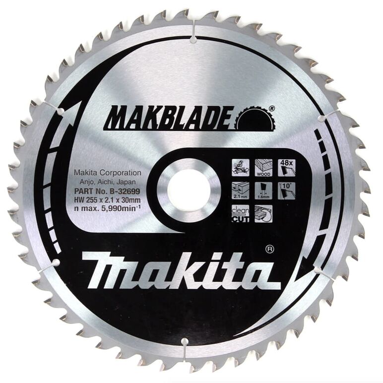 - 1x Makita MAKBLADE Kreissägeblatt für Holz 255 x 30 x 2,1 mm 48 Zähne ( B-32699 )