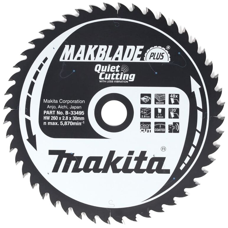 - 1x Makita MAKBLADE PLUS Kreissägeblatt für Holz 260 x 30 x 2,8 mm 48 Zähne ( B-33495 )