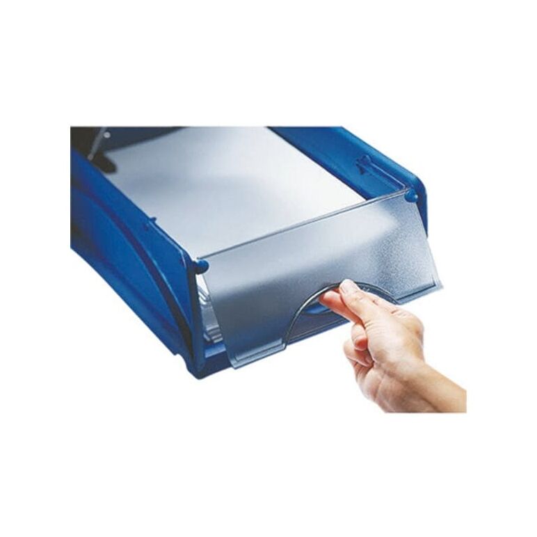 Zum Ablegen und Aufbewahren von Papier, Formularen und Briefumschlägen, aufgrund der Frontklappe auch ideal für Klein- und Ersatzteile. Grau-transparente herausnehmbare und arretierbare Frontklappe. Zweifache Unterteilung für z. B. DL-Formate möglich.