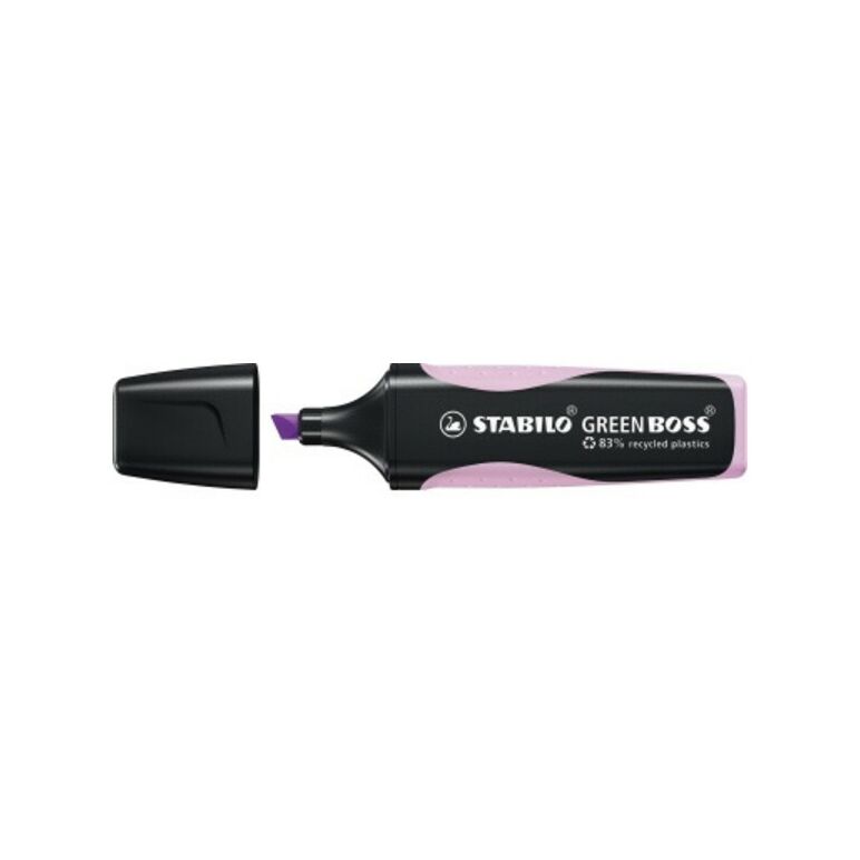 Der umweltfreundliche Textmarker GREEN BOSS Pastell kombiniert Qualität mit Nachhaltigkeit und ist die perfekte Wahl für alle umweltbewussten Kunden. Hergestellt aus 83 % recyceltem Material · um die natürlichen Ressourcen zu schonen. Durch die einzigartige STABILO Anti-Dry-Out Technologie zeichnet sich der GREEN BOSS Pastell ideal für langes konzentriertes Arbeiten aus und kann bis zu 4 Stunden ohne Kappe geöffnet bleiben · ohne auszutrocknen.