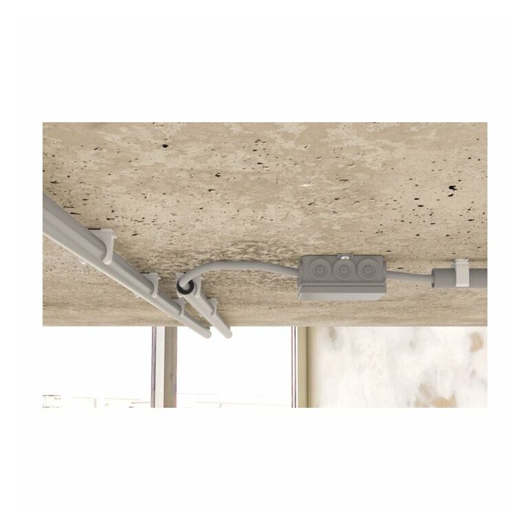 Der fischer Rohrclip RC ist eine montagefreundliche Lösung zur Rohrbefestigung. Mit z.B. dem fischer DuoPower oder dem fischer Nageldübel N 6 wird der Rohrclip im Bohrloch befestigt. Bei Befestigung in Beton und Vollbaustoffen kann der Nageldübel N verwendet werden, bei Befestigung in Loch- und Plattenbaustoffen z.B. der fischer DuoPower. Nach der Montage werden die Kunststoff-Isolierrohre in den Rohrclip eingelegt. Die Vorspannung der Rohrclips hält die Rohre sicher. Der fischer Rohrclip RC ist ideal, um Kunststoff-Isolierrohre einfach zu befestigen.