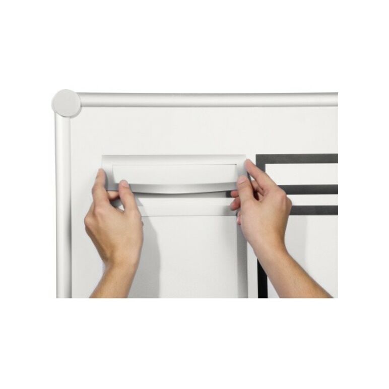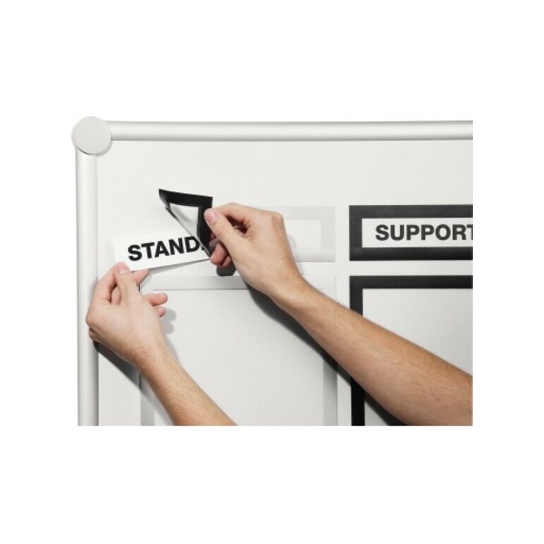 Für die Strukturierung von Informationen an metallischen Oberflächen, wie z.B. Whiteboards, Schautafeln, Spinden, usw. Einfaches und schnelles Wechseln der Informationen. Einsetzbar für A4 Hochformate oder A5 Querformate.