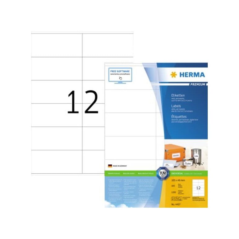 Herma 4457 Universal-Etiketten 105 x 48 mm Papier Weiß 1200 St. Permanent haftend Tintenstrahldrucker, Laserdrucker, Farblaserdrucker, Kopierer, Farbkopierer,