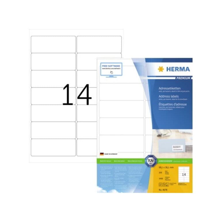 Herma 4678 Adress-Etiketten 99.1 x 38.1mm Papier Weiß 1400 St. Permanent haftend Tintenstrahldrucke