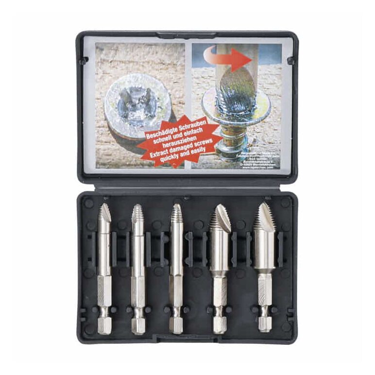 • Zum schnellen und einfachen Lösen und Entfernen gebrochener und beschädigter Schrauben, sowie eingelassener Schrauben mit defekten Köpfen