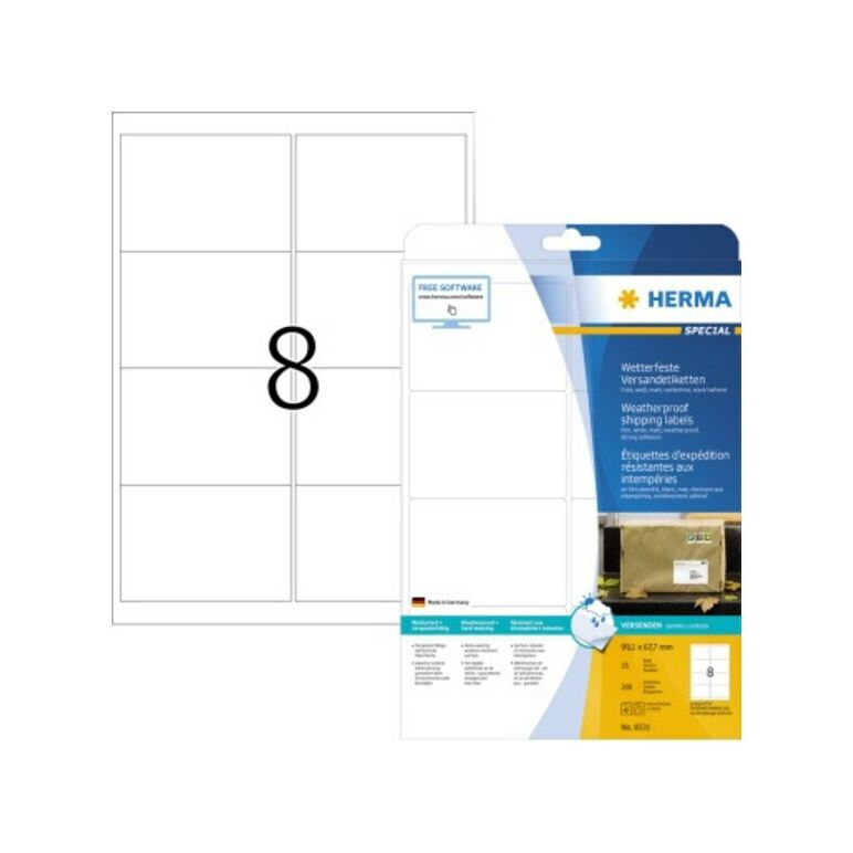 HERMA Wetterfeste Versandetiketten A4, 99,1 x 67,7 mm, weiß, aus Folie, extrem stark haftend
