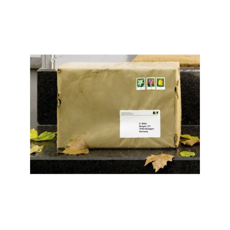 Robust und strapazierfähig - bei jedem Wetter lesbar. Sicher haftend auf allen Verpackungsmaterialien: Kuverts, Pakete, Versandrollen, Folien, PE und Tyvek. Schmutz abweisend. Störungsfreie Verarbeitung durch Rundum-Sicherheitskante und optimale Planlage. Nicht für Inkjetdrucker geeignet. Weitere technische Eigenschaften: · Ausführung der Haftung: stark haftend · alterungsbeständig: Ja · UV-beständig: Ja · ölbeständig: Ja · Temperaturbereich: -30 bis 80 °C · Ausführung der Oberflächenbeschaffenheit: matt