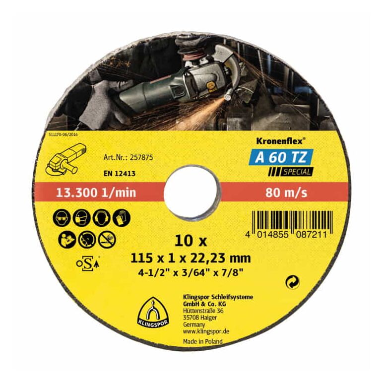 A 60 tz Trennscheiben, 115 x 1 x 22,23 mm gerade, Art.Nr. 257875 - Klingspor