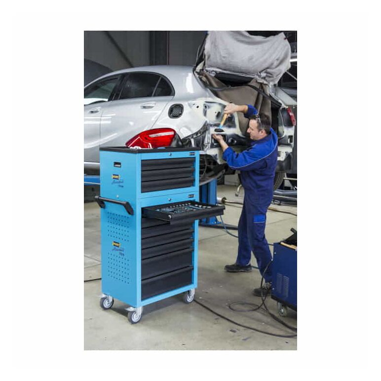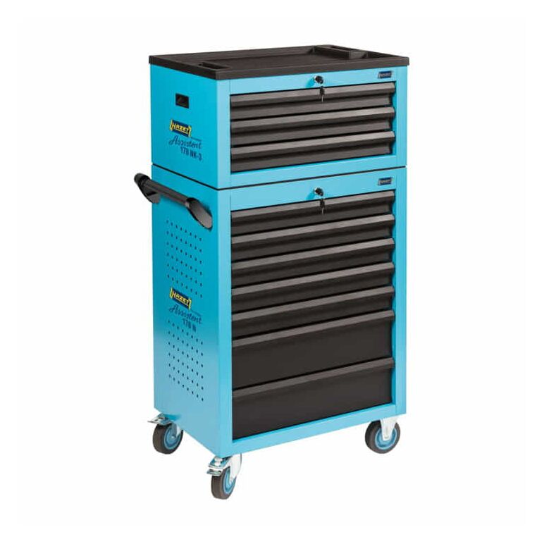 HAZET Werkstattwagen Assistent (Montagewagen, mit Aufsatzkoffer, insgesamt 8 flache und 2 hohe Schubladen, Schubladentraglast 20 kg, mit zweistufigem Verriegelungssystem) 178N-10