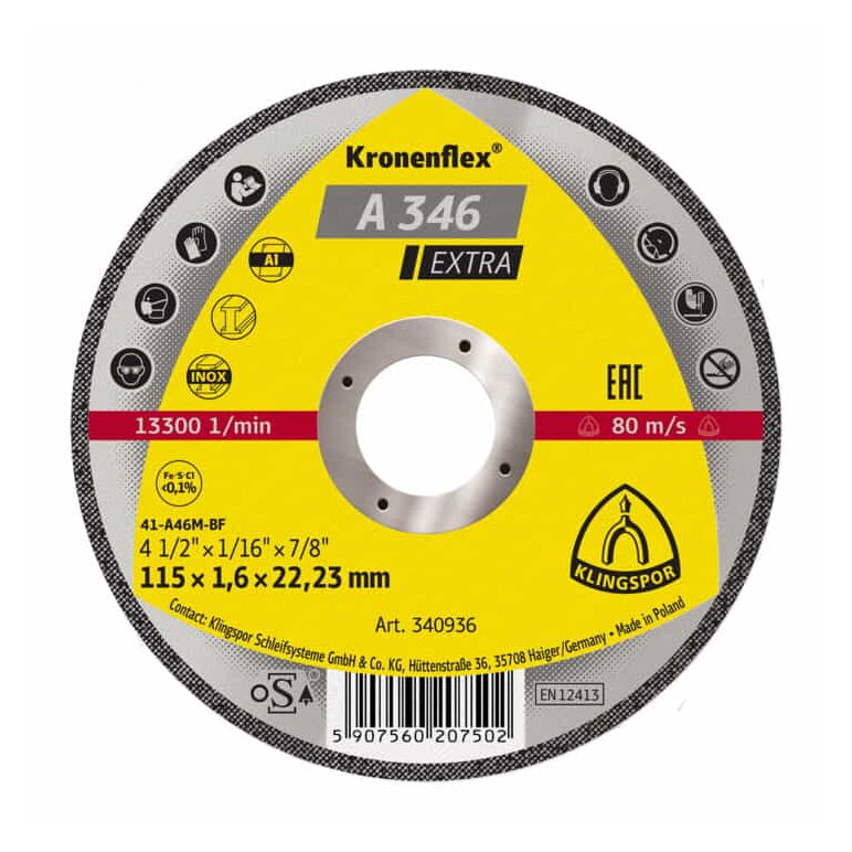 Tarcza do cięcia metalu 125mm x 1,6mm x 22,2mm a346 ex - Klingspor