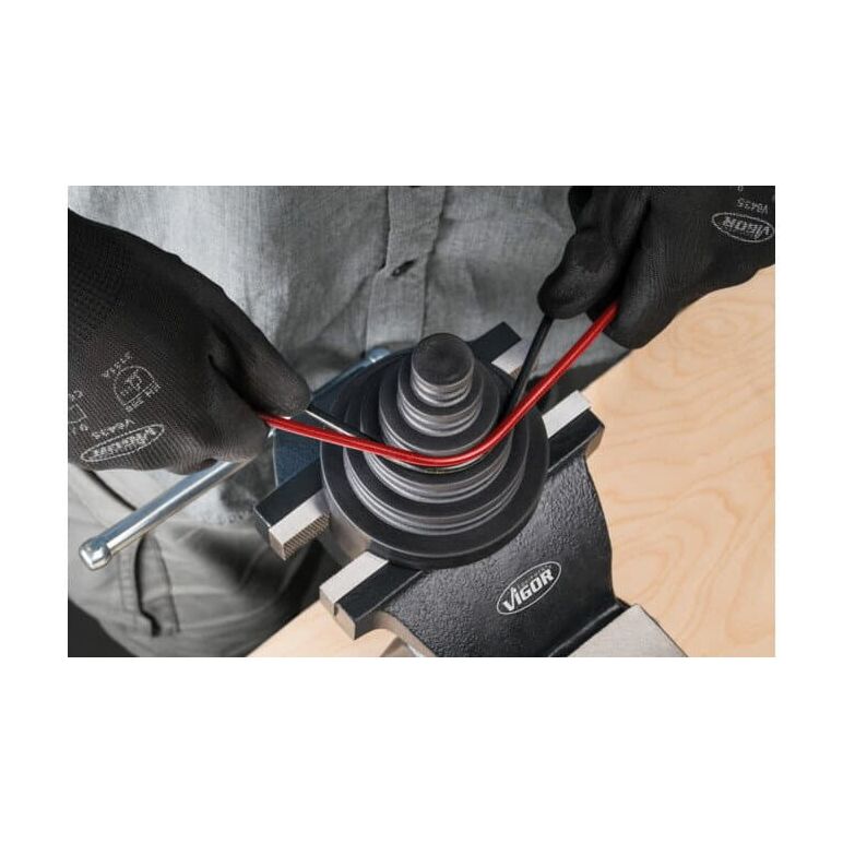 - Die Bauform des Werkzeuges ermöglicht die Leitungen mithilfe von 5 verschiedenen Radien zu biegen