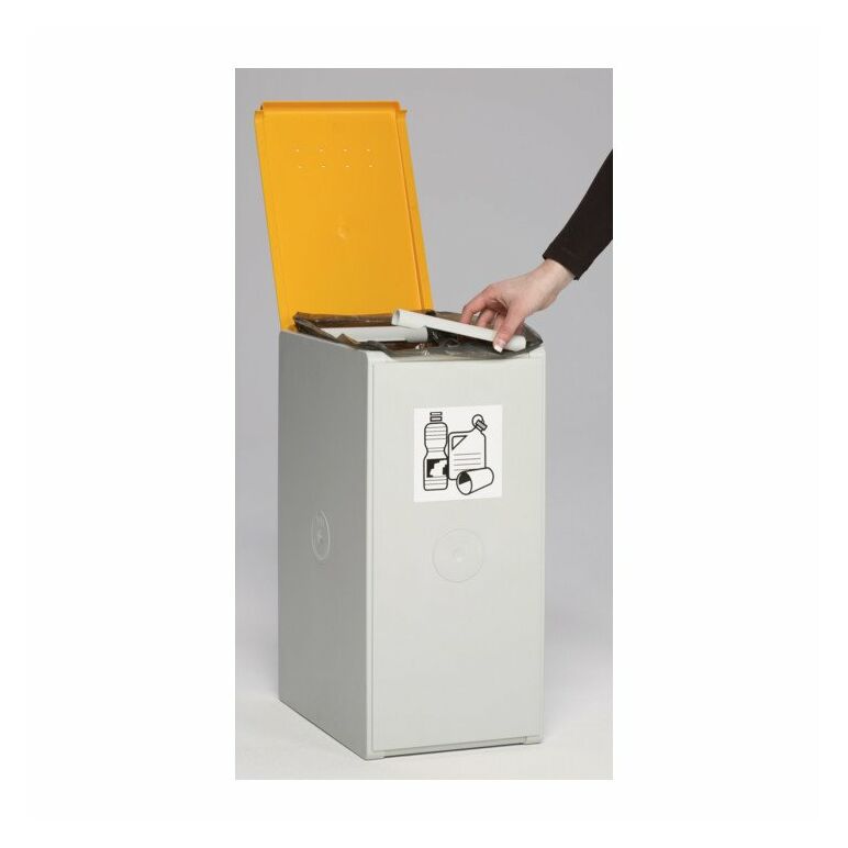 • Für den Einsatz von 60 l Kunststoffsäcken! Mit praktischen Sackklemmen.