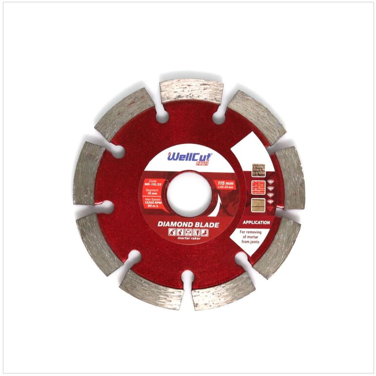 Die hochwertige WellCut Diamant Trennscheibe MR-115/22 überzeugt mit einer langen Lebensdauer und besonders hoher Leistung. Sie ist für präzise Arbeiten geeignet und kann zum Entfernen von Mörtelresten genutzt werden.