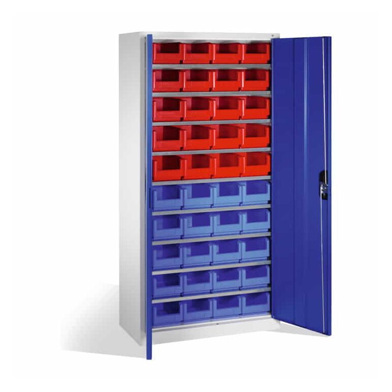 - 1x C+P Magazinschrank mit 40 Sichtlagerkästen, H1980xB1000xT420mm Front Enzianblau Korpus Lichtgrau