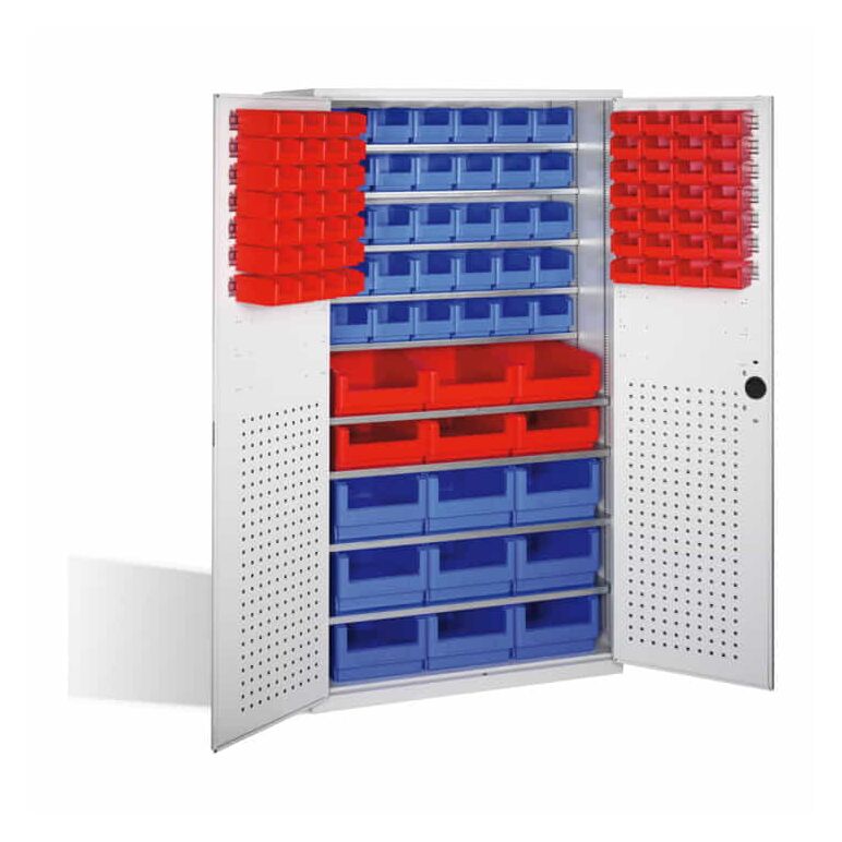 - 1x C+P Magazinschrank mit 106 Sichtlagerkästen, H1950xB1100xT535mm Front Lichtgrau Korpus Lichtgrau