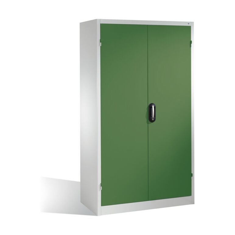 - 1x C+P Magazinschrank mit 83 Sichtlagerkästen und 3 Schubladen, H1950xB1100xT535mm Front Resedagrün Korpus Lichtgrau
