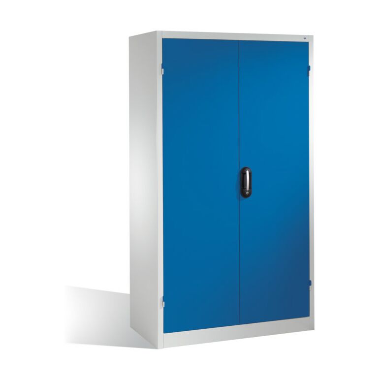 - 1x C+P Magazinschrank mit 83 Sichtlagerkästen und 3 Schubladen, H1950xB1100xT535mm Front Enzianblau Korpus Lichtgrau