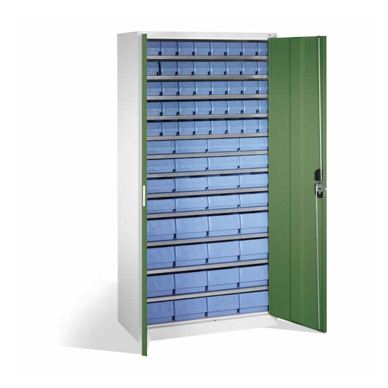 - 1x C+P Magazinschrank mit 72 Regalkästen, H1980xB1000xT420mm Front Resedagrün Korpus Lichtgrau