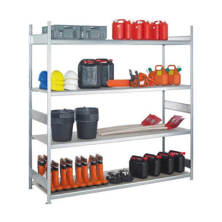 Schulte Grundregal Weitspannregal WS 2000 mit Spanplatten 2500 x 2500 x 600 mm verzinkt 4 Ebenen Fachlast 400 kg Feldlast 1.600 kg