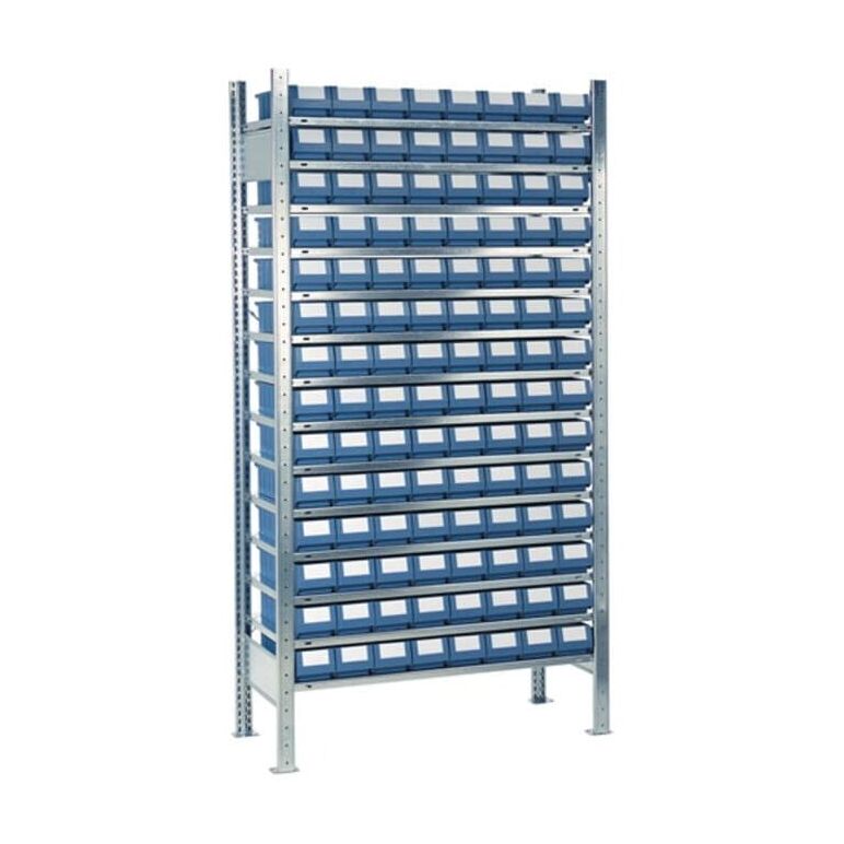 Steck-Anbauregal H2000xB1000xT300mm 14 Böden 112 Kästen Gr. 1 blau