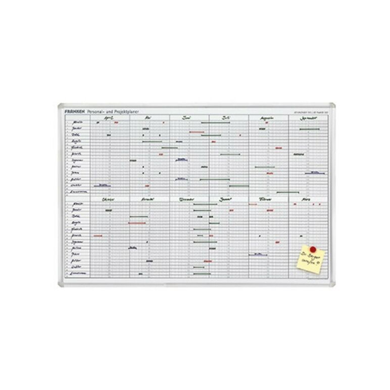 FRANKEN Personal- & Projektplaner über 12 Monate mit 24 Positionen, lackiert, magnetisch, beschreibbar, trocken abwischbar, mit Aluminiumrahmen, Magnettafel zur Wandbefestigung, 90 x 60 cm, JK710
