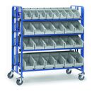 Fetra Transportgeräte mtecf892 Wagen mit Tablett für Boxen verstellbar 52 Boxen, 1420 mm Länge x 740 mm Breite x 1530 mm Höhe, Blau