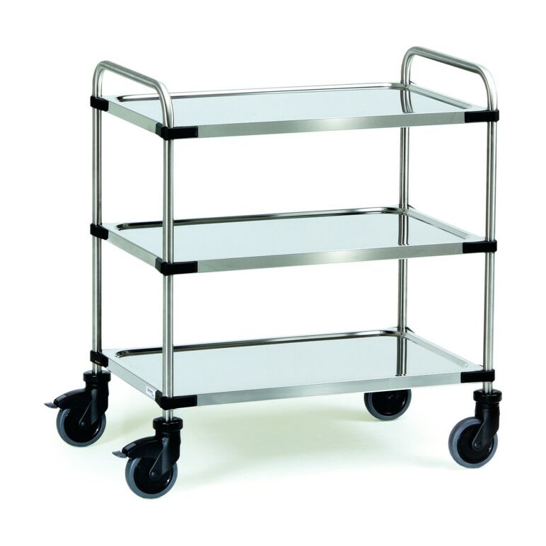 fetra Edelstahlwagen 150 kg, mit Rohrschiebebügel und 3 Böden