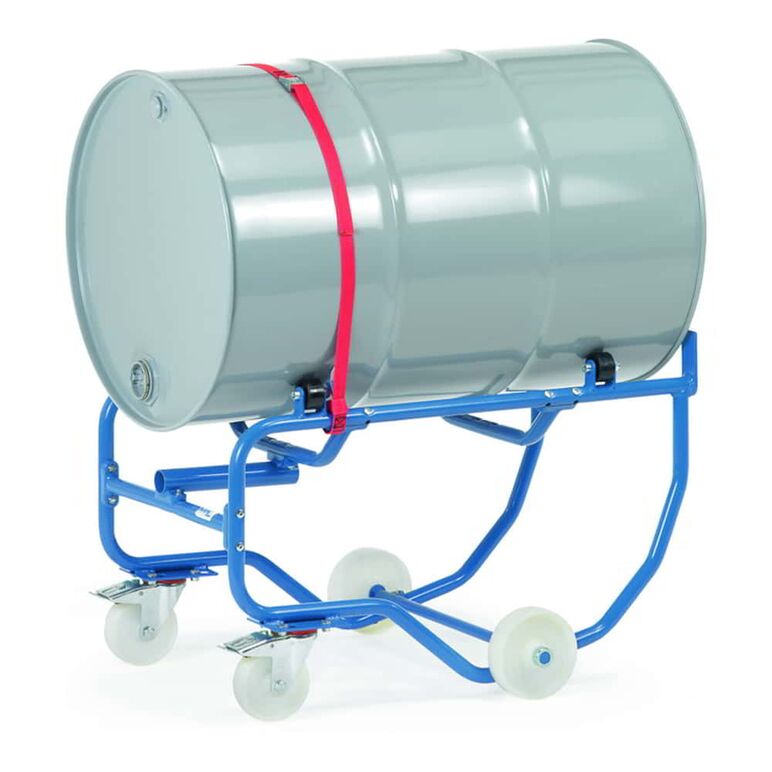 Eigenschaften:Zum Lagern und Entleeren von 200-Liter-StahlfässernStahlrohr-Konstruktion, verschraubt, pulverbeschichtet blau RAL 5007. Spanngurt zur Fass-SicherungVollwertiger Fasskipper mit Hebelstange, fahrbarMit Rollen zum Verdrehen der FässerAufnahme der Fässer ohne Hebegerät mittels Kippvorgang mit Hebelstange.2 Lenkrollen mit Rädern 125 x 38 mm und 2 Räder 150 x 42 mmFeststeller an den Lenkrollen Außenmaße LxBxH: 900 x 615 x 600 mm.