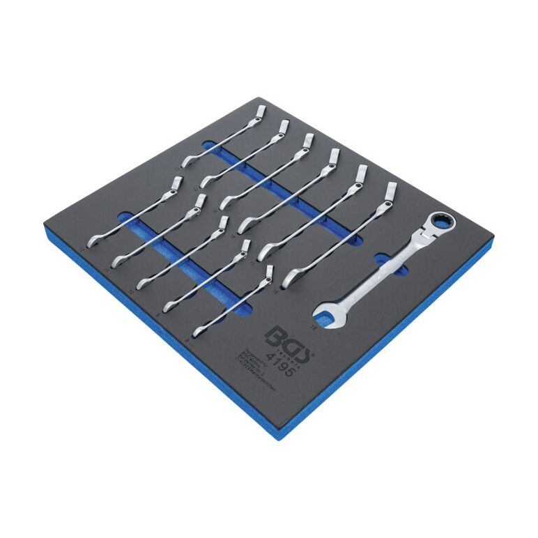 BGS Werkstattwageneinlage 2/3: Ratschenring-Maulschlüssel-Satz abwinkelbar SW 8 - 19 mm 12-tlg.
